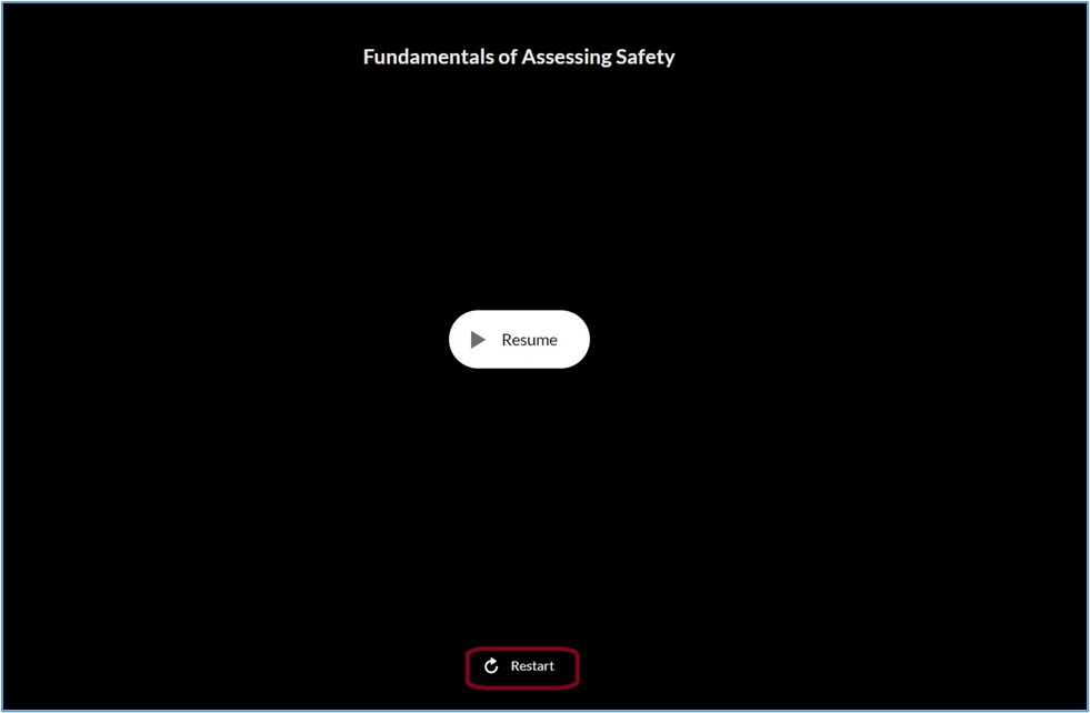 When relaunching the training kindly click "Restart" below the "Resume" button.