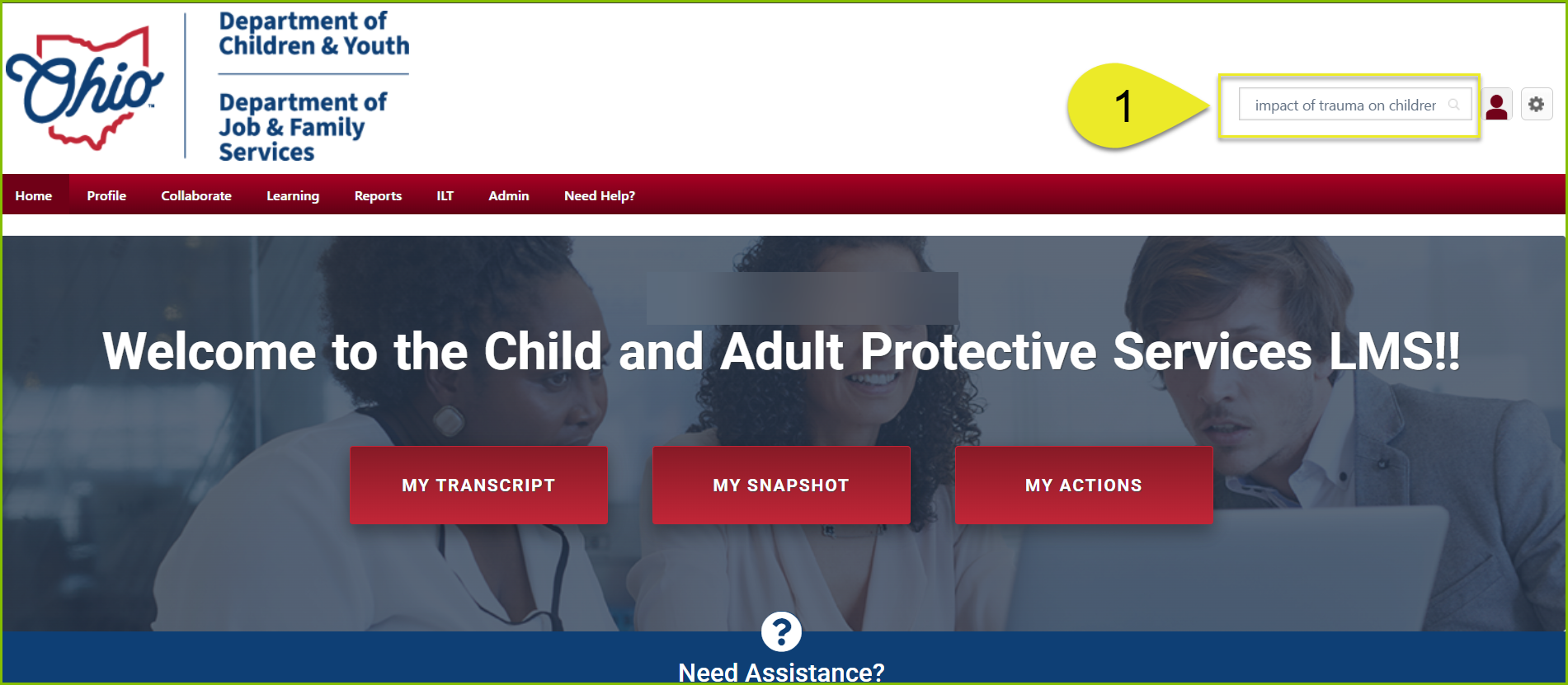 1. In the search bar to the top-right, enter the name of the course you are trying to reschedule.