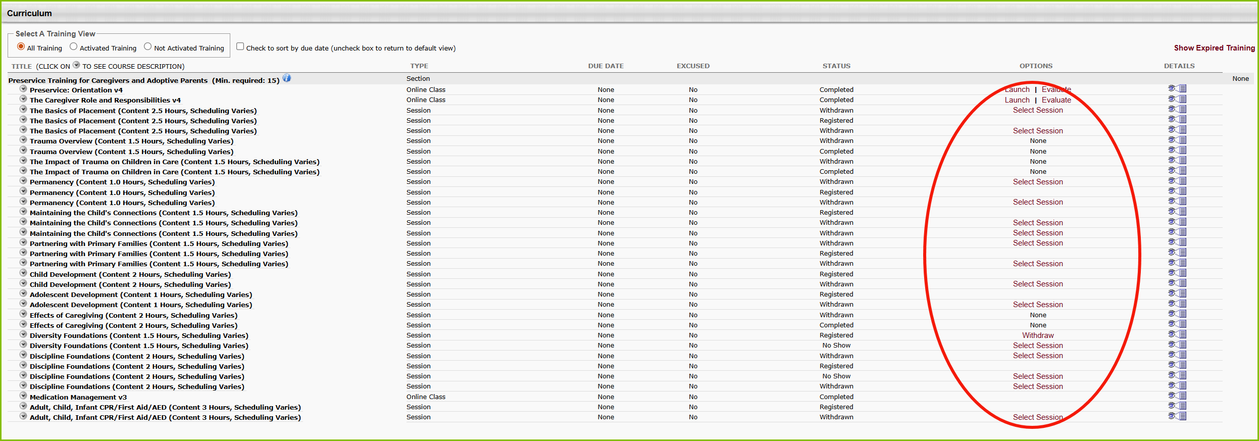 3. Once on the following page, find the course title and choose the desired session by clicking “Select Session”.